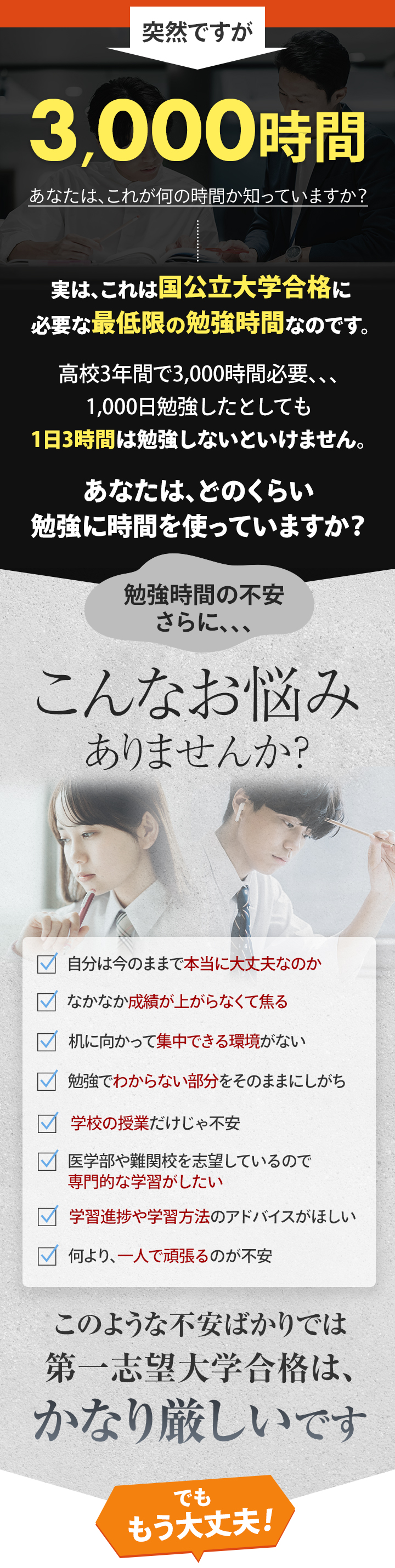 お子様の大学受験に向け、日々サポートされている皆様に心より敬意を表します。当塾は、その大切な役割を共に担い、お子様の夢の実現を目指す強力なパートナーでありたいと考えております。